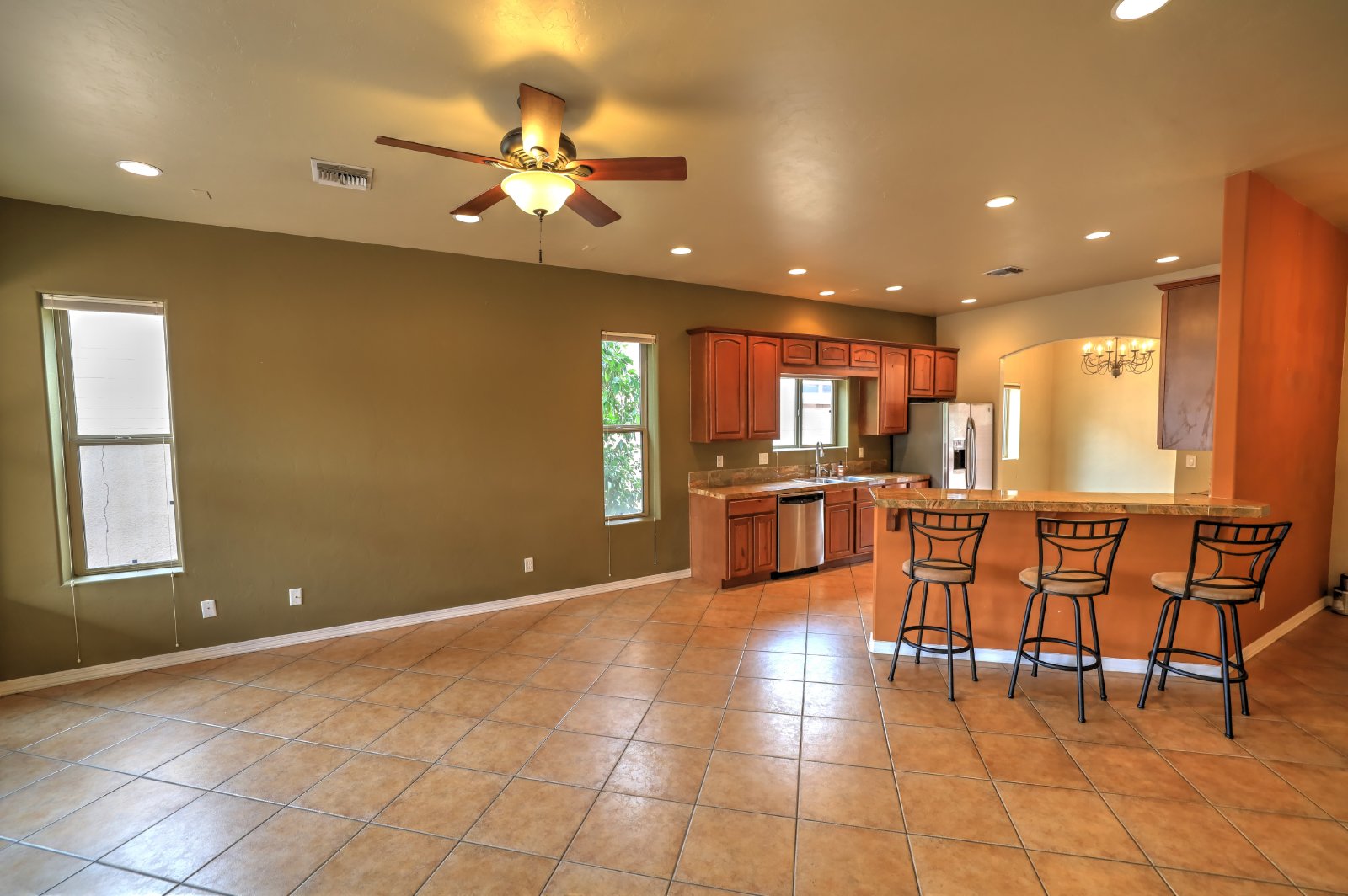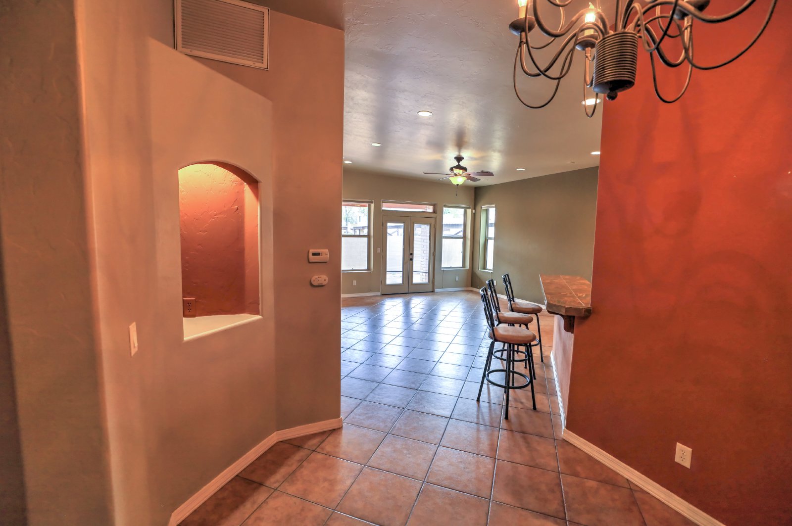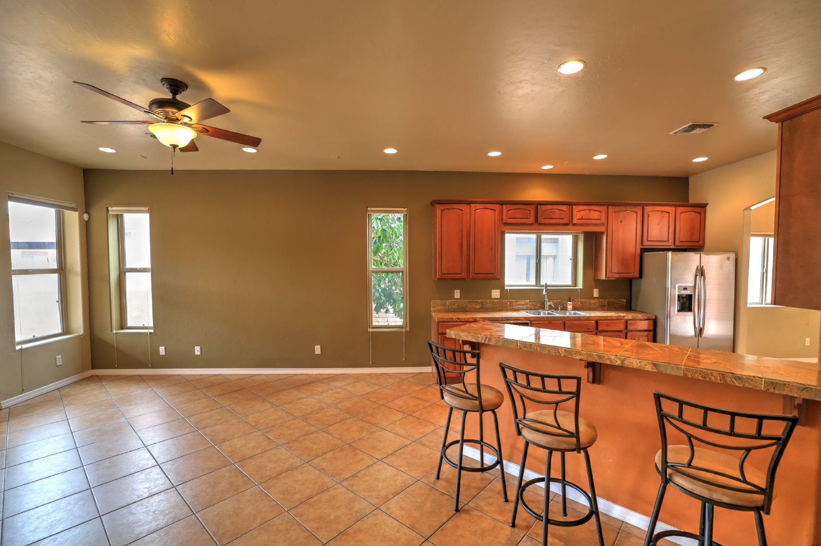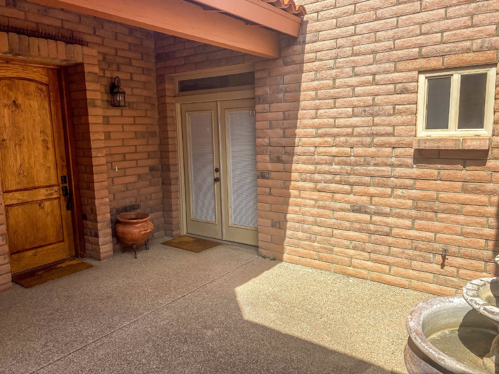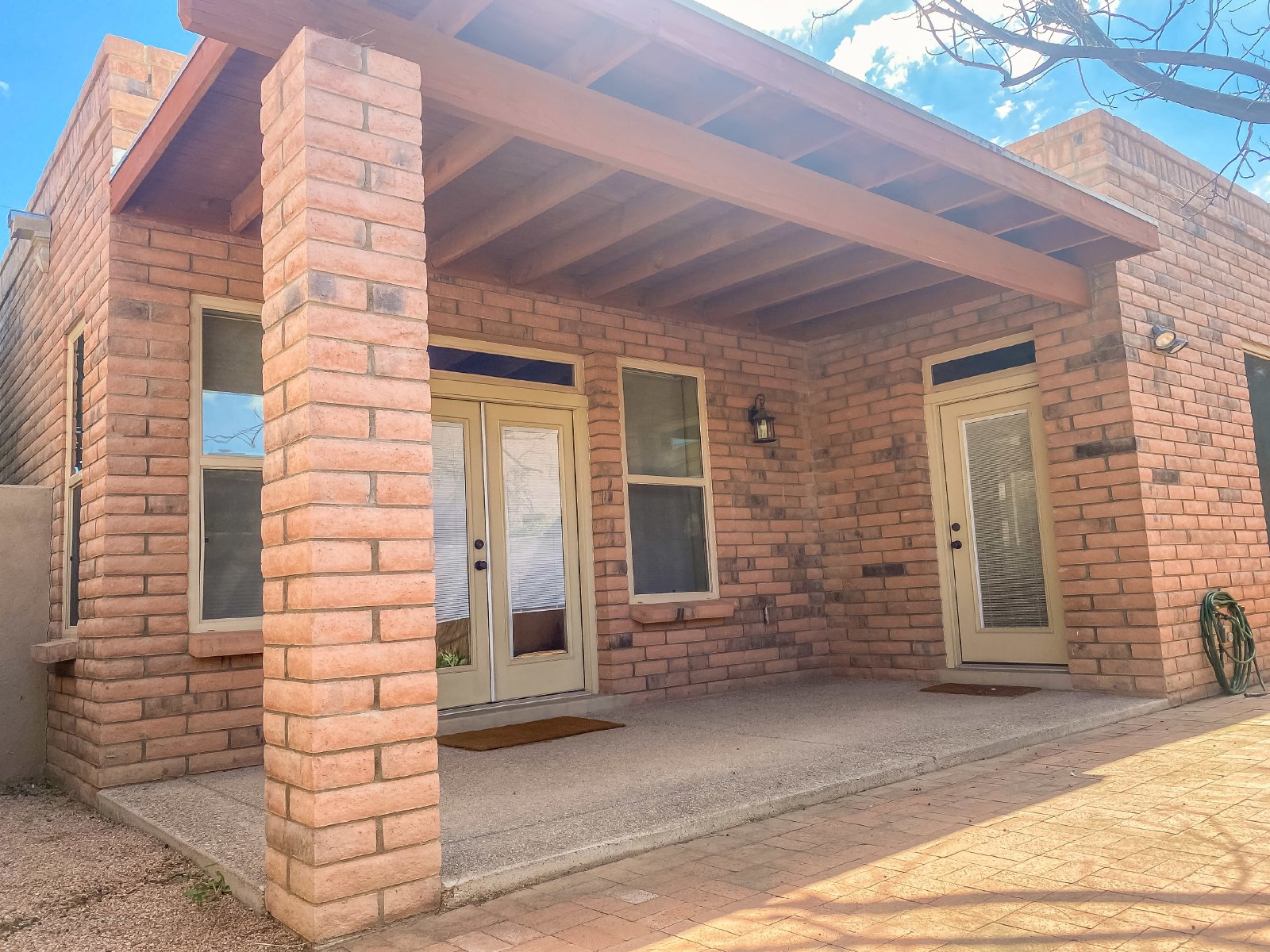 Central Tucson brick 3 bedroom 2 bath great room design with formal dining and breakfast bar. Entry gate opens to charming , private courtyard and amenities include 10' soaring ceilings, custom cabinetry, tile throughout and 8Ft alder wood doors. Kitchen has granite counters and stainless appliances. There is a covered patio with entry from master bedroom. Small dogs allowed with deposit, call or text James at 520-991-7809 to schedule viewings.