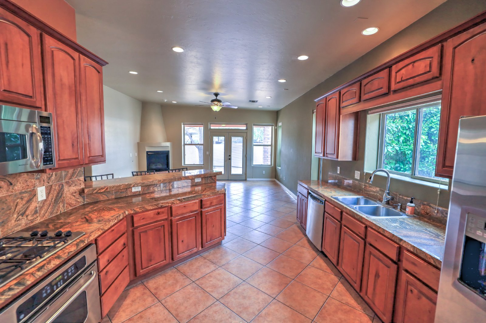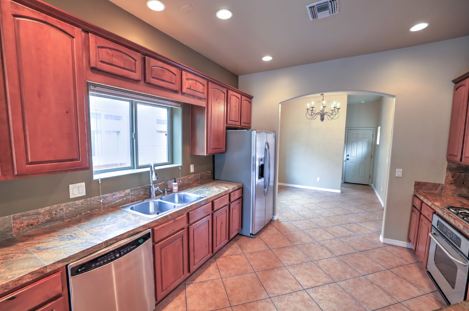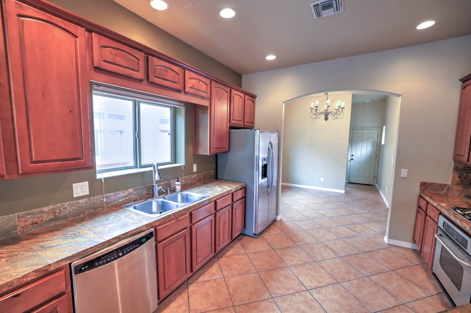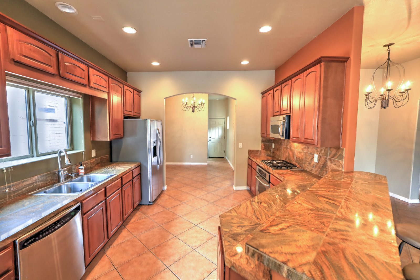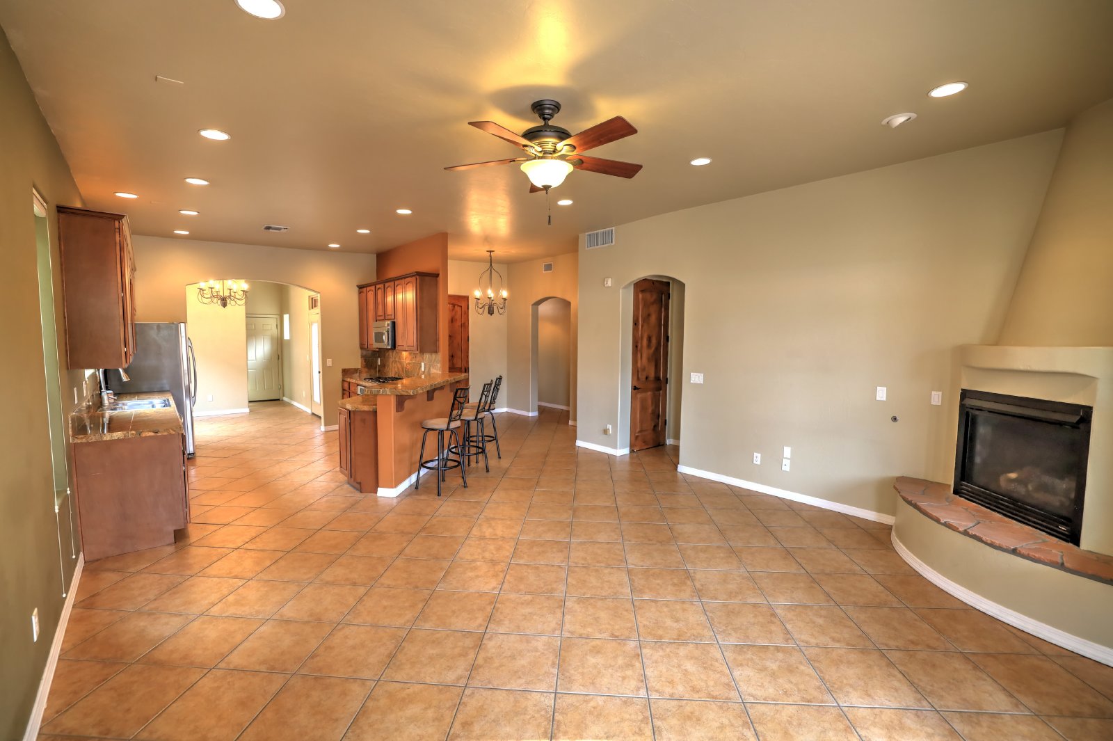 Central Tucson brick 3 bedroom 2 bath great room design with formal dining and breakfast bar. Entry gate opens to charming , private courtyard and amenities include 10' soaring ceilings, custom cabinetry, tile throughout and 8Ft alder wood doors. Kitchen has granite counters and stainless appliances. There is a covered patio with entry from master bedroom. Small dogs allowed with deposit, call or text James at 520-991-7809 to schedule viewings.