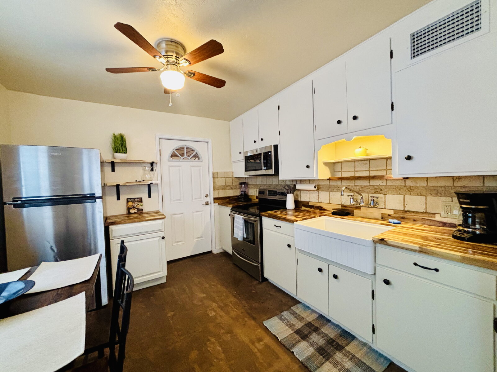- Toaster, blender, coffee maker, dishes