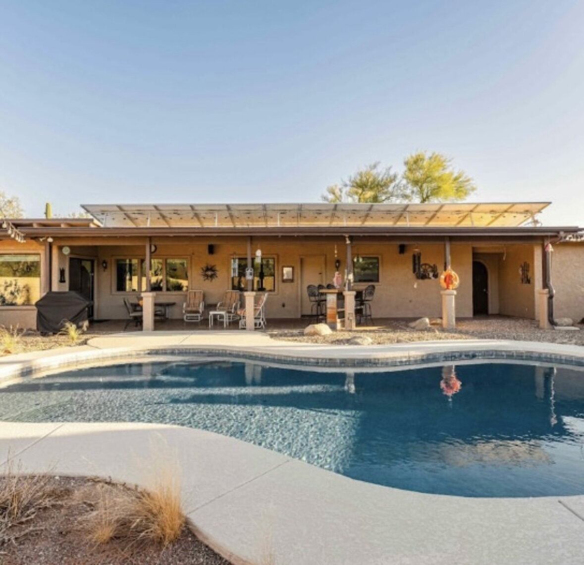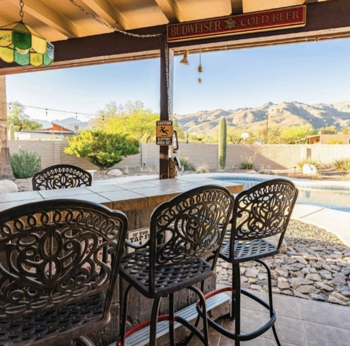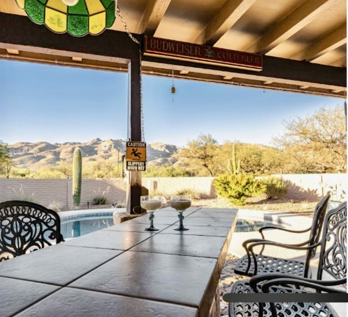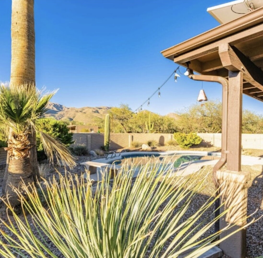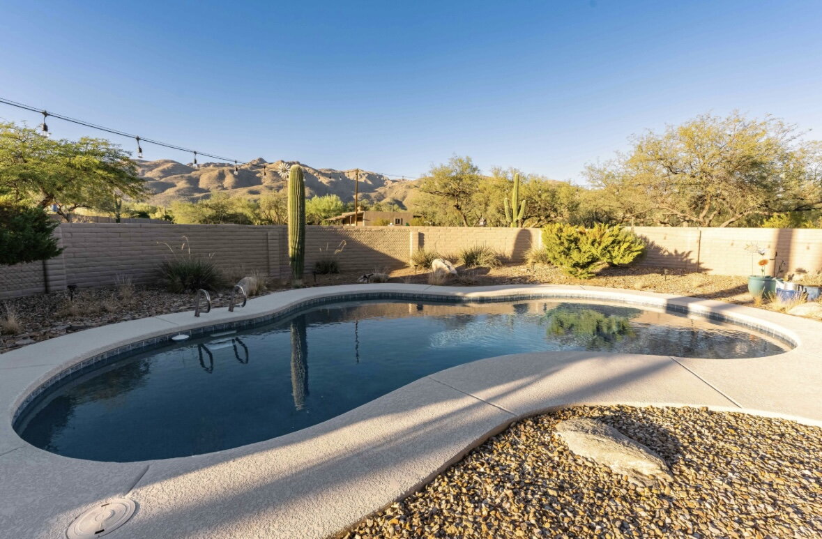 Engage with the serene beauty of desert living where the warmth of the Arizona sun welcomes you home! This delightful, spacious furnished rental home offers three comfortable bedrooms and two full bathrooms, providing ample space for relaxation and personal retreat. The open floor plan has a generous living space full of abundant natural light, creating a bright and airy atmosphere perfect for both entertaining and everyday living. The fully stocked kitchen offers a perfect canvas for culinary creativity. Nestled in the tranquil Tanque Verde neighborhood, this residence affords you the opportunity to enjoy the breathtaking landscapes that Tucson is known for with easy access to hiking trails in the stunning Sonoran Desert. Step outside and enjoy the picturesque desert sunsets and beautiful mountain views from your own backyard oasis with a fully fenced yard and your own private pool! Experience the unique charm of Tucson living in this inviting rental home. Your perfect desert retreat awaits!