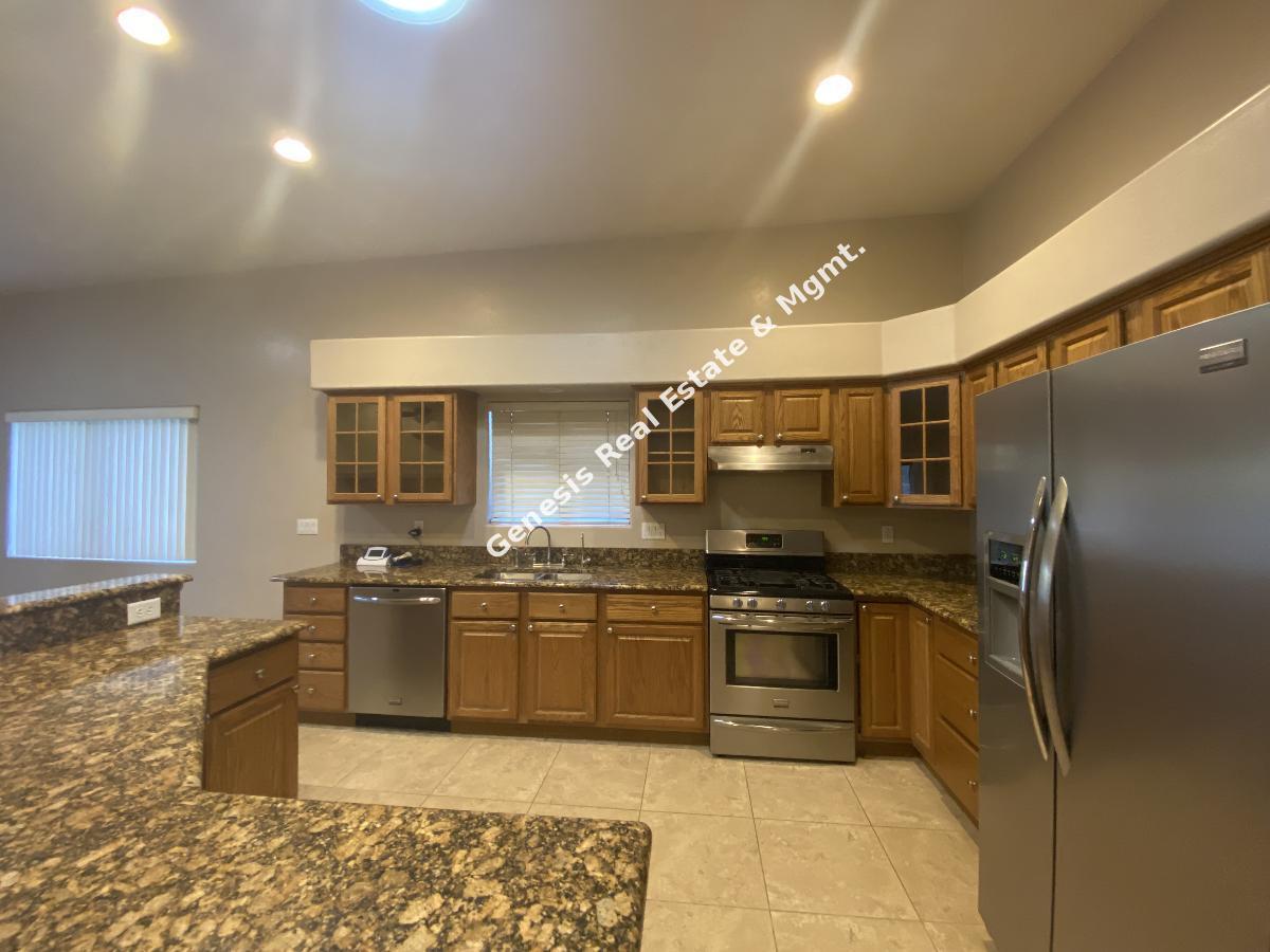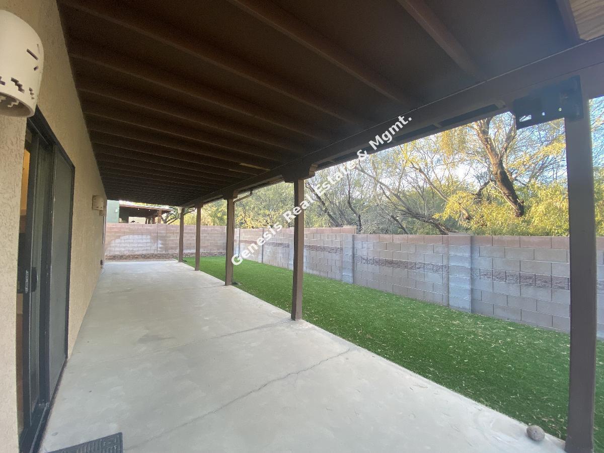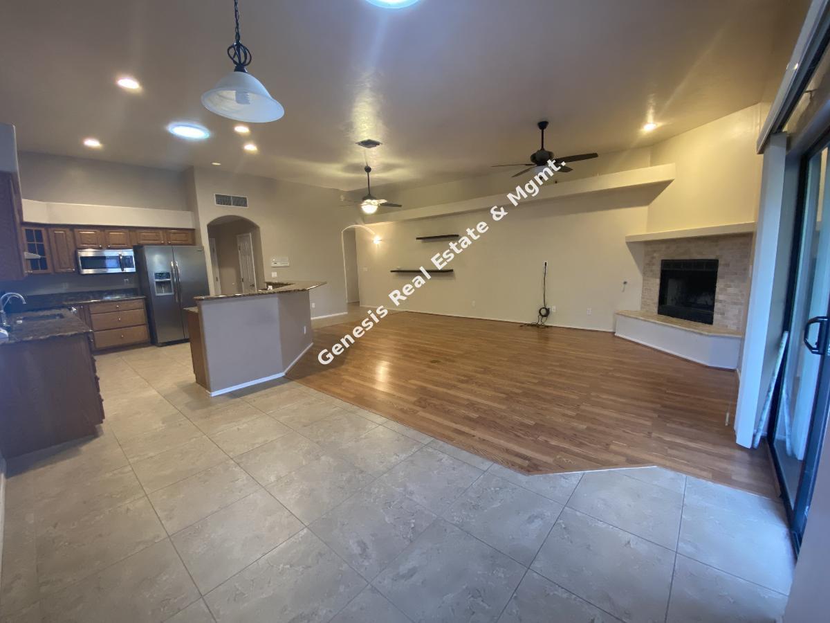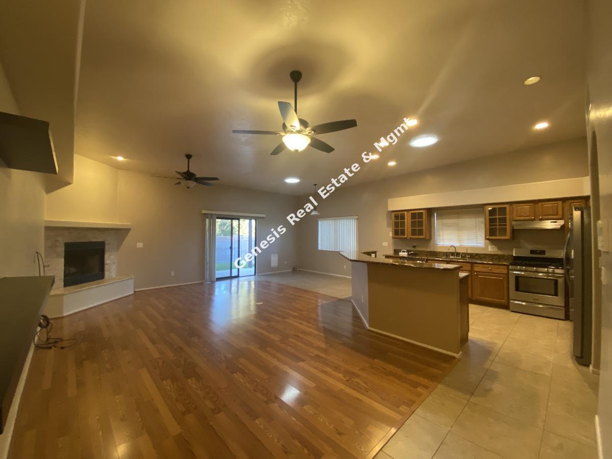 Move in ready 3 bed 2 bath with Den, 3 car garage , your own pool and in ground spa this definitely is Home Sweet Home. Upon your entry you will value all this home has to offer with the amazing open floorplan, New laminate floor in bedrooms and living room. Gas fireplace, and a kitchen that will be a cooks delight, with SS Appliances, Gas Stove, & granite counters, The master bathroom has a large walk in closet, dual vanity, sunken tub and separate shower. Ceiling fans in all bedrooms for added cooling comfort. The backyard is a true easy care oasis with the extended patio, artificial grass, gated pool and spa. Best part weekly pool service is included in the rent. Close to everything but yet nicely tucked away, this Gem will not last long. Call or Text Angie Pena at 520-311-1194 for your showing