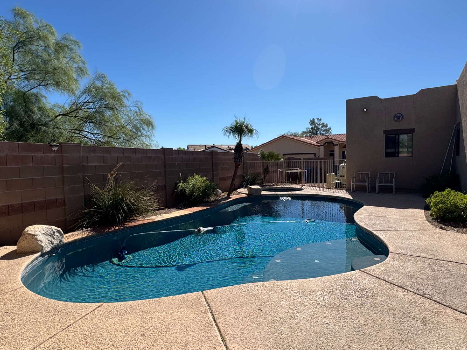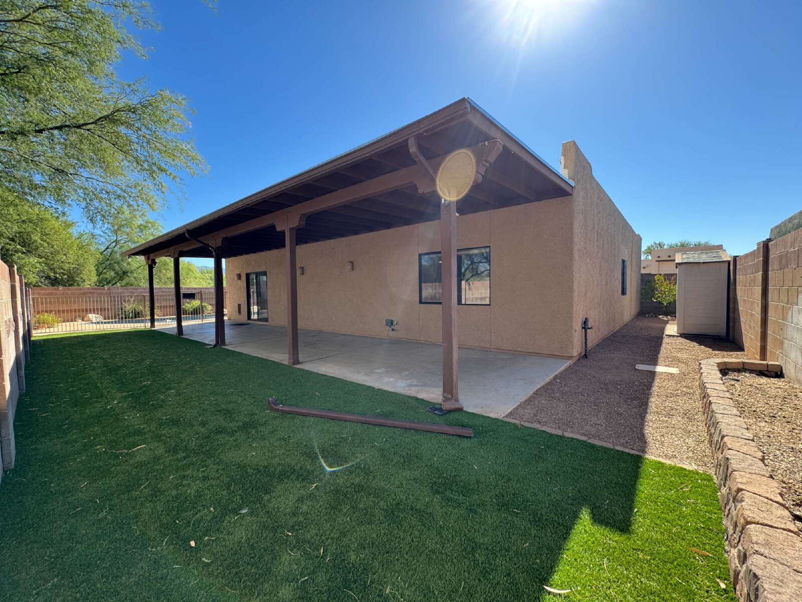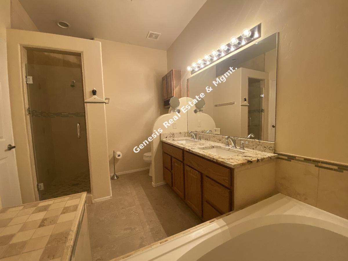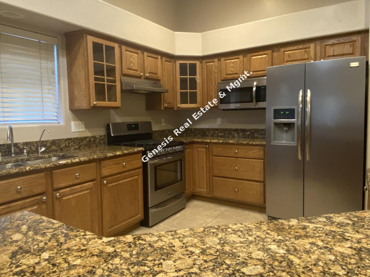 Move in ready 3 bed 2 bath with Den, 3 car garage , your own pool and in ground spa this definitely is Home Sweet Home. Upon your entry you will value all this home has to offer with the amazing open floorplan, New laminate floor in bedrooms and living room. Gas fireplace, and a kitchen that will be a cooks delight, with SS Appliances, Gas Stove, & granite counters, The master bathroom has a large walk in closet, dual vanity, sunken tub and separate shower. Ceiling fans in all bedrooms for added cooling comfort. The backyard is a true easy care oasis with the extended patio, artificial grass, gated pool and spa. Best part weekly pool service is included in the rent. Close to everything but yet nicely tucked away, this Gem will not last long. Call or Text Angie Pena at 520-311-1194 for your showing