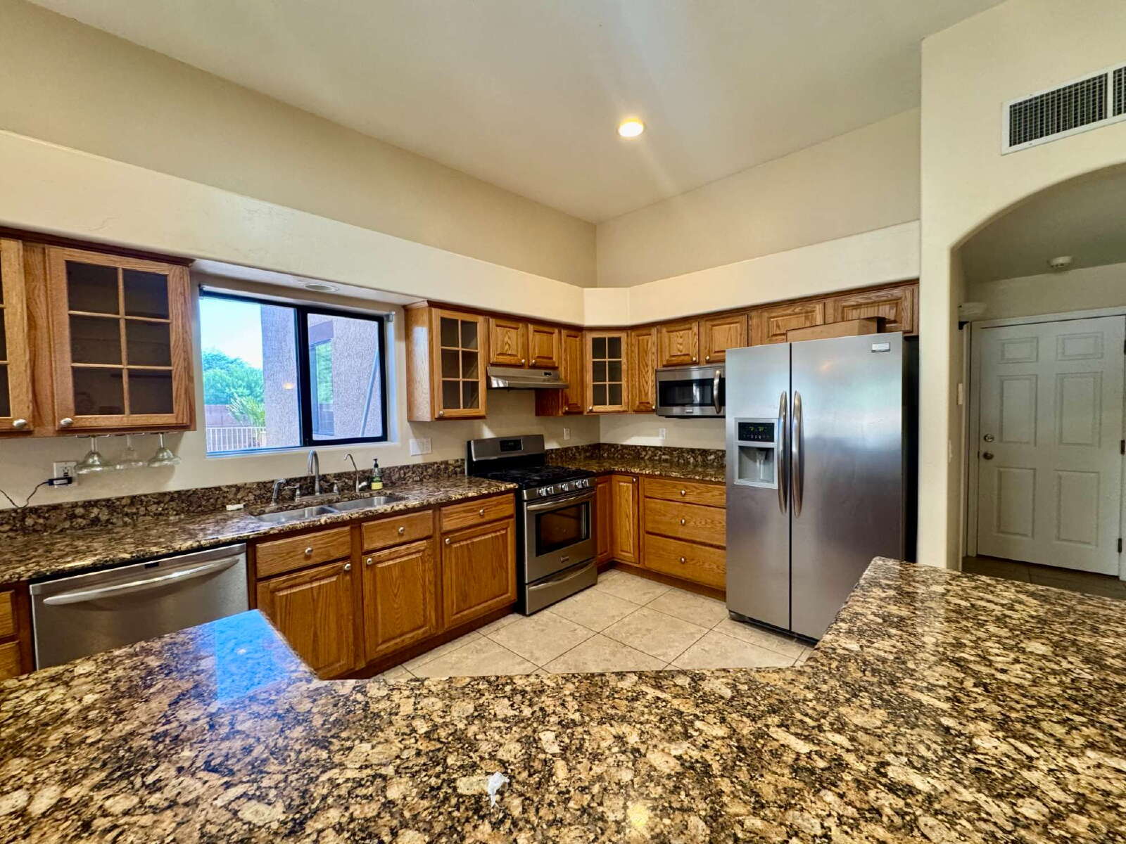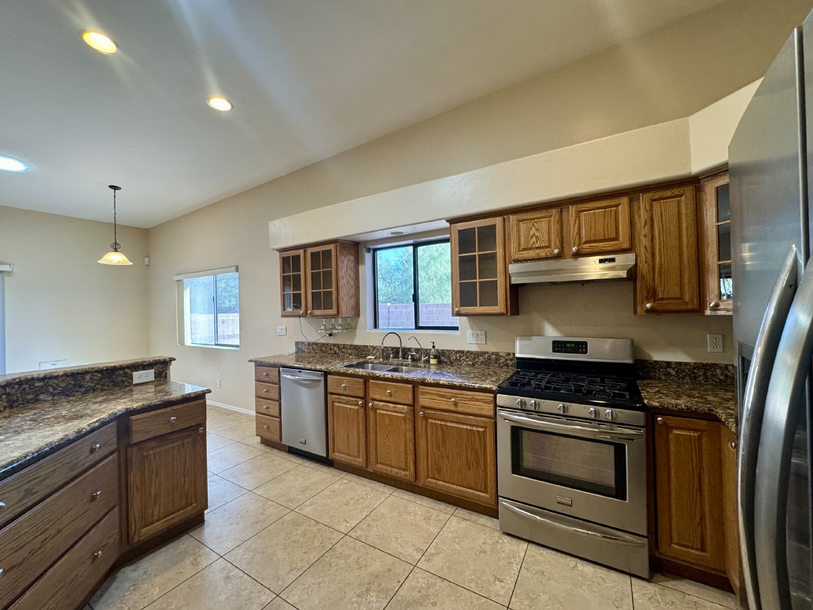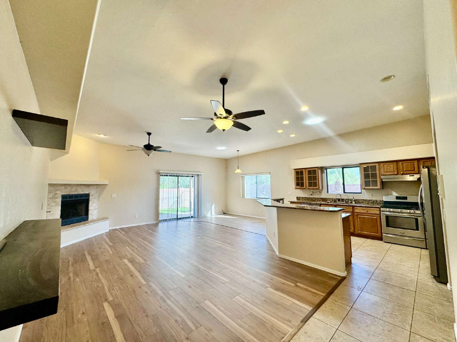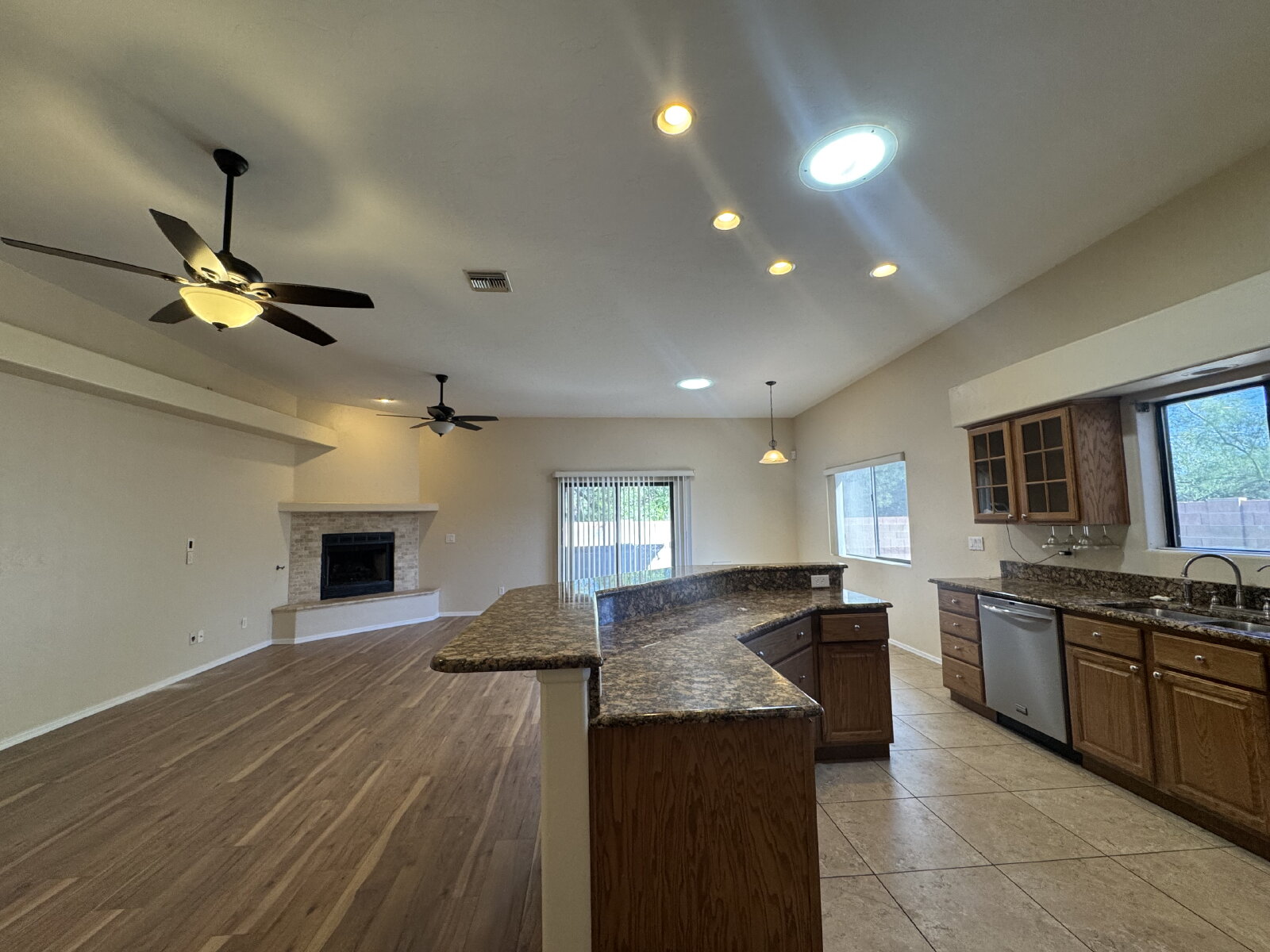 Move in ready 3 bed 2 bath with Den, 3 car garage , your own pool and in ground spa this definitely is Home Sweet Home. Upon your entry you will value all this home has to offer with the amazing open floorplan, New laminate floor in bedrooms and living room. Gas fireplace, and a kitchen that will be a cooks delight, with SS Appliances, Gas Stove, & granite counters, The master bathroom has a large walk in closet, dual vanity, sunken tub and separate shower. Ceiling fans in all bedrooms for added cooling comfort. The backyard is a true easy care oasis with the extended patio, artificial grass, gated pool and spa. Best part weekly pool service is included in the rent. Close to everything but yet nicely tucked away, this Gem will not last long. Call or Text Angie Pena at 520-311-1194 for your showing