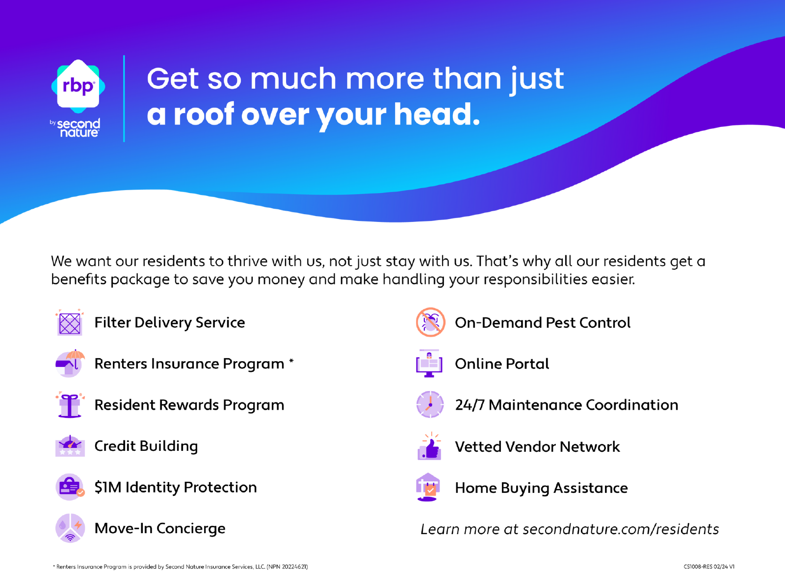 At Genesis Real Estate & Management, we strive to provide an experience that is cost-effective and convenient. That’s why we provide a Resident Benefits Package (RBP) to address common headaches for our renters. Our program handles insurance, pest control, air filter changes, utility set up, credit building and more at a rate of $50.00/month, automatically added to every eligible property with the ability to opt-out.